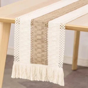 American Style Table Runner – 16×63 Inch Lace Embroidered Rectangular Cover for Coffee Table, TV Stand & Dresser, Dustproof European Linen Tablecloth (Beige & White)