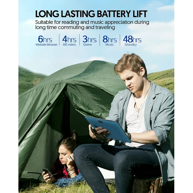 The 10-inch Android tablet features Android 13, 7GB RAM , and 64GB storage , expandable up to 1TB. It has a 6000mAh battery , 5G Wi-Fi , and dual cameras with 2MP front and 8MP rear sensors. The tablet is equipped with a 10.1-inch IPS FHD display , quad-core processor, and Bluetooth 5.0. With a long-lasting battery and convenient charging, it’s ideal for travel, reading, and entertainment, offering a balanced mix of performance, storage, and connectivity.