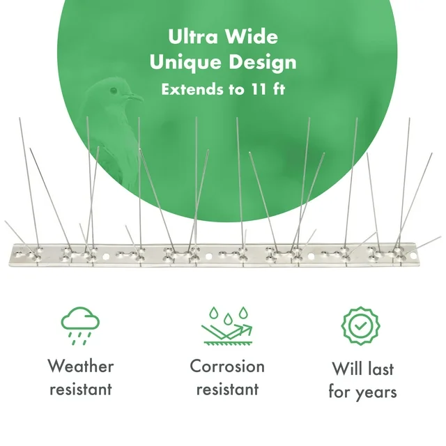 - Ultra Wide – 4″ wide pigeon spikes to keep birds away, more efficient than bird repellent spray