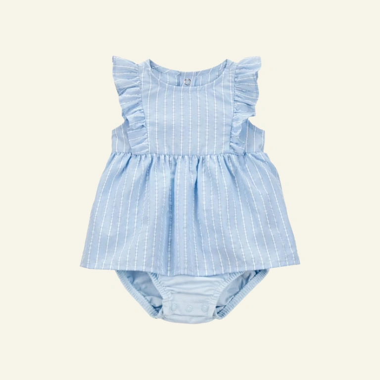 - Features: seersucker, blue and white