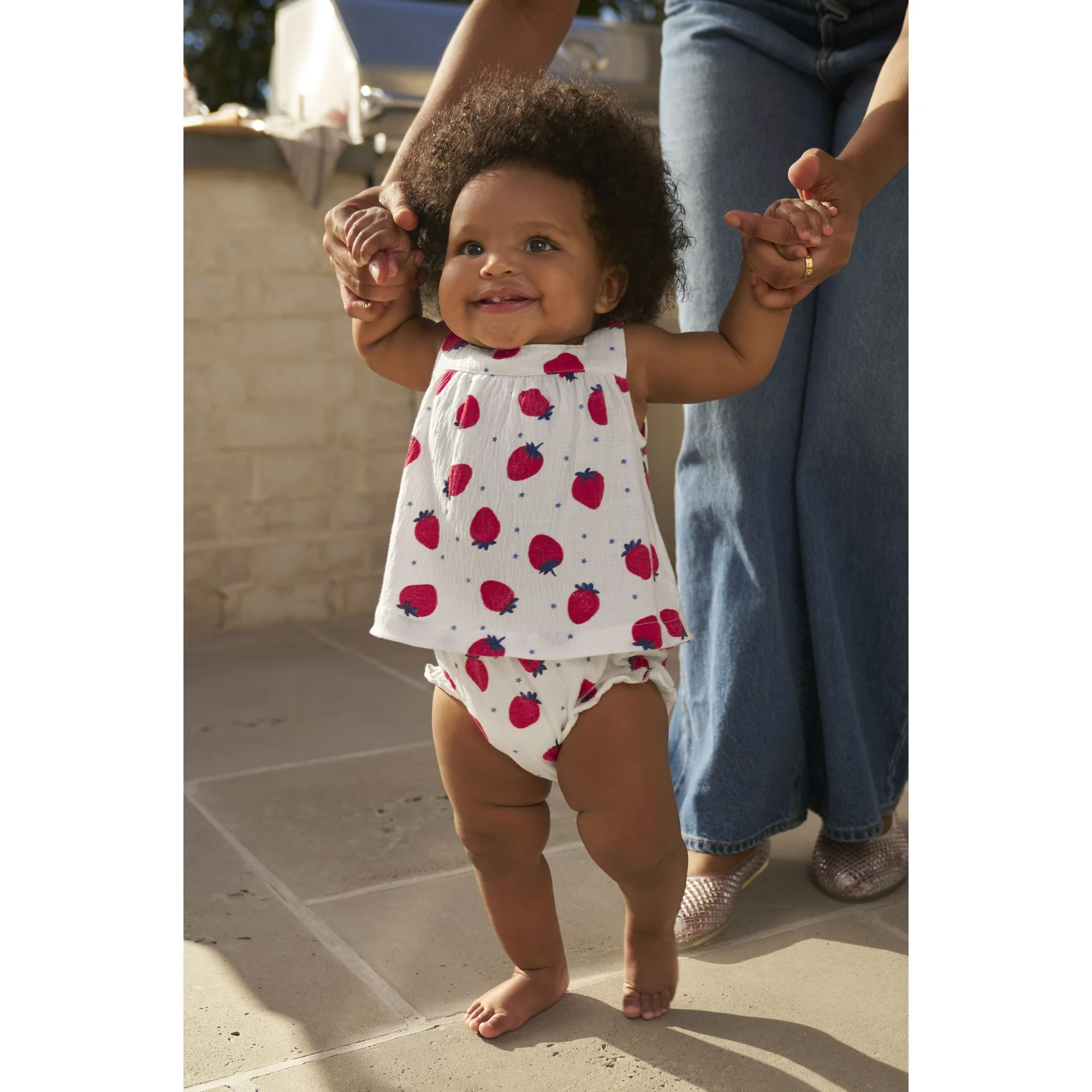 • Features: 2-piece shorts set, Fourth of July-themed outfit, allover strawberry print