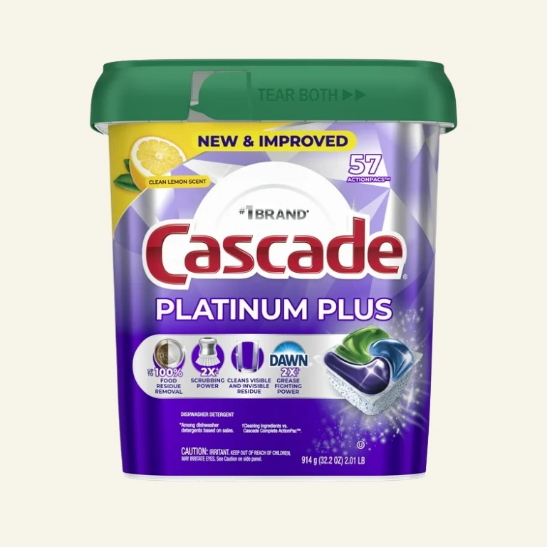 - Only Cascade Platinum Plus contains 2X* the Dawn grease fighting power and 2X* the scrubbing power to power through dried on food *Cleaning ingredients vs Cascade Complete ActionPacs