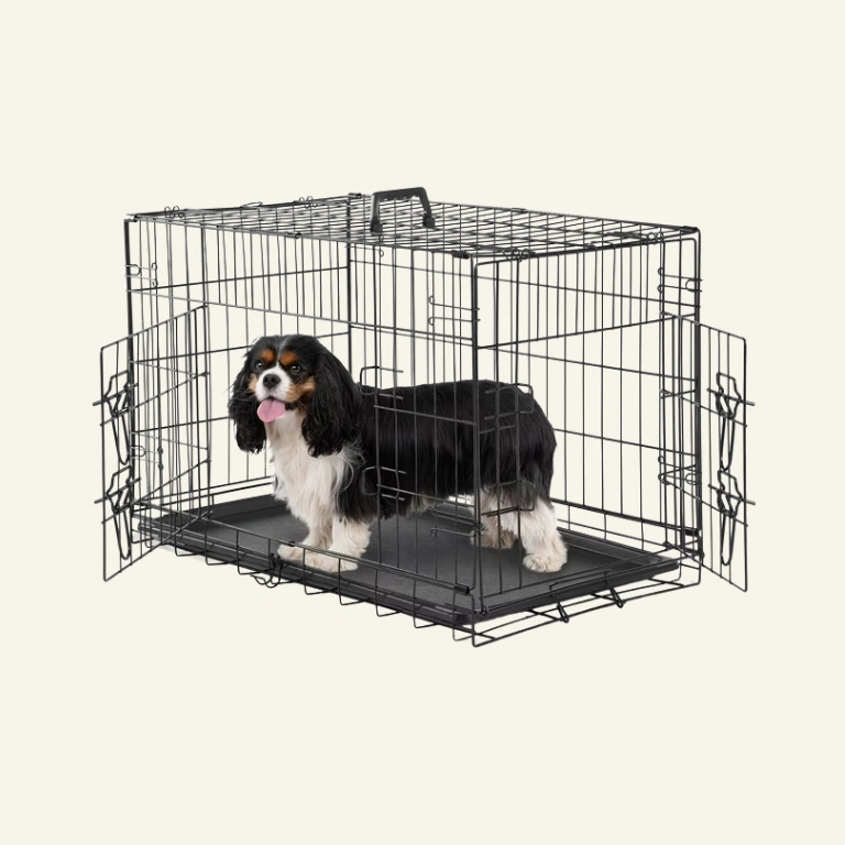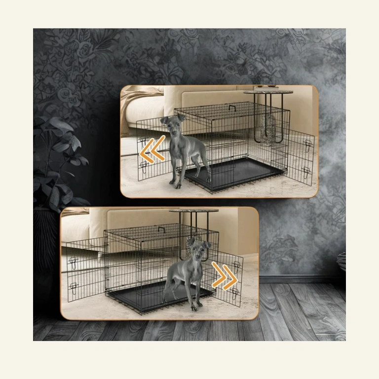 The EDX Medium Dog Crate features a  30-inch double door folding metal wire design  with a divider panel and  leak-proof pan tray . Made of high-quality materials, it prioritizes safety with rounded edges and heavy-duty locks. The crate is  collapsible for easy transport and storage , and its spacious interior promotes air circulation. The  durable ABS composite tray  is easy to clean and maintain, resisting stains and odors. With  double-door access , this crate is ideal for indoor, outdoor, and travel use, providing a comfortable environment for pets. Its sturdy construction ensures long-term reliability and durability.