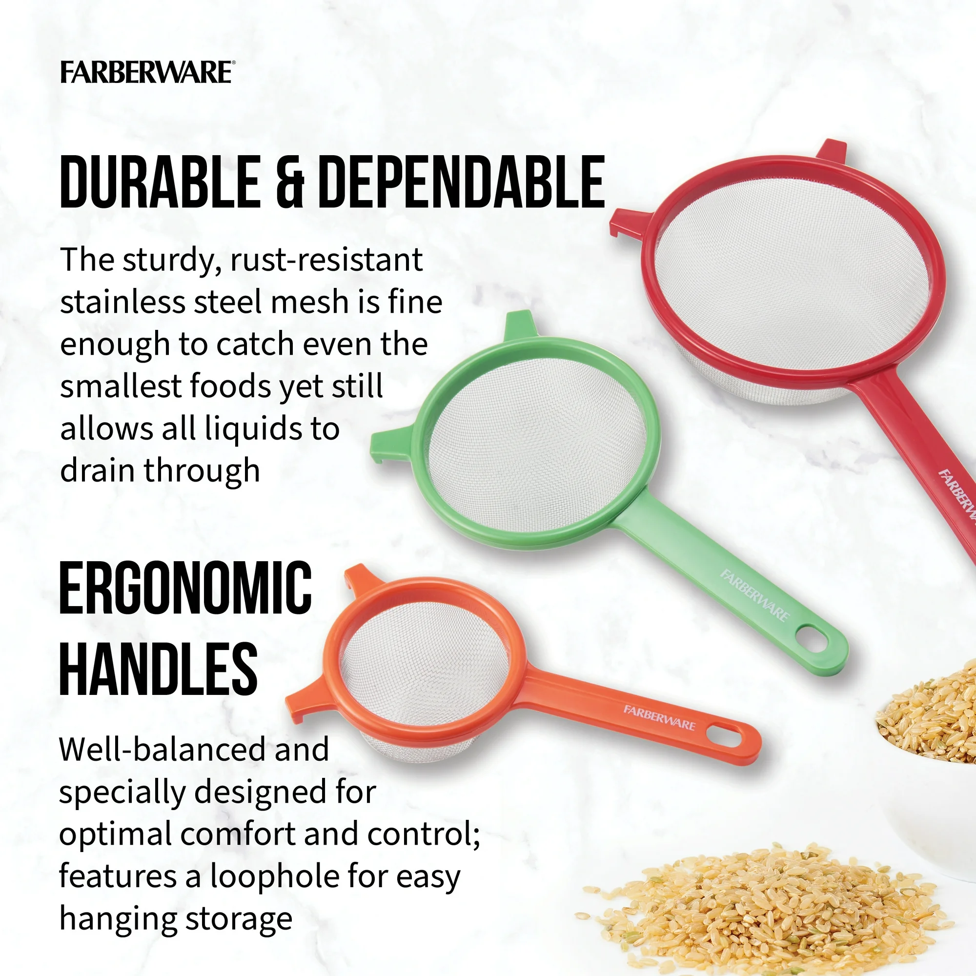 Be the first to review “Farberware Professionals Red, Green & Orange Strainer Set of 3”