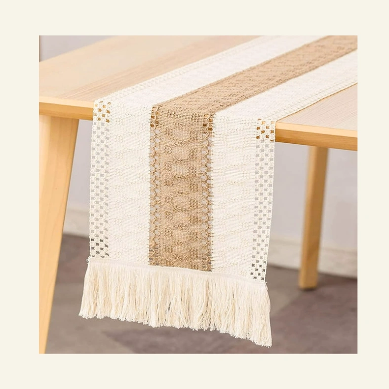 - Design: The bohemian splicing woven table runner with tassel design is made of beige and burlap woven openwork striped cotton, which can bring you a minimalist feeling and bohemian charm, giving your table a .