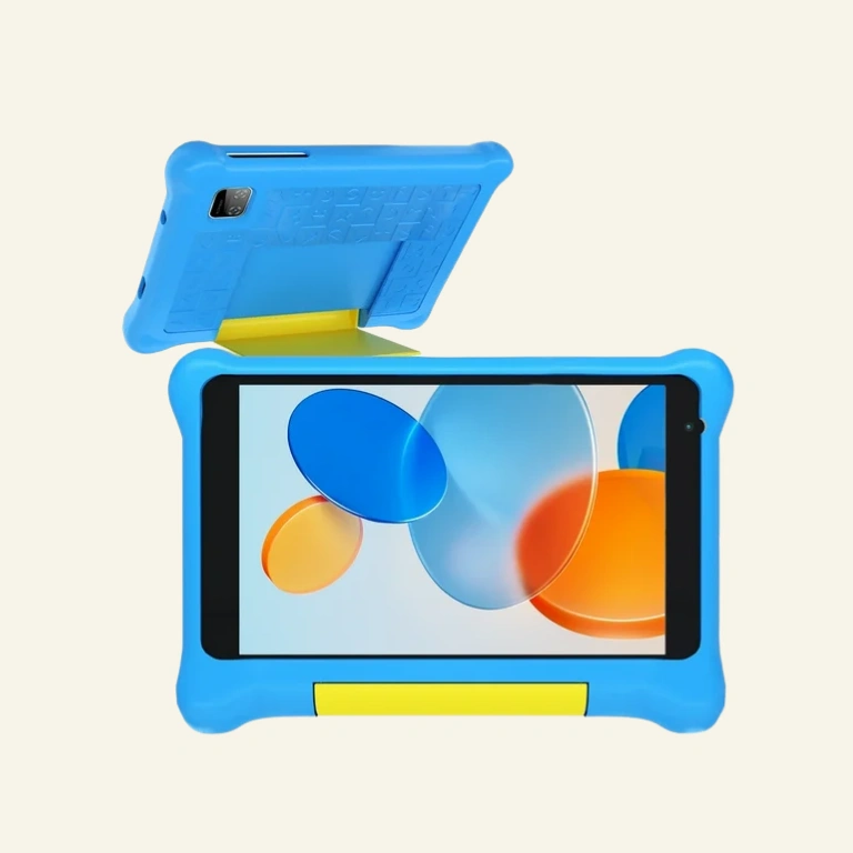 The Kids Tablet features a 7-inch 1024×600 HD IPS display , Android 13 operating system , and a 64-bit quad-core processor . It has 5GB RAM , 32GB ROM, and expandable storage up to 128GB. The tablet includes Wi-Fi and Bluetooth connectivity, a 2MP rear webcam, and a sturdy kid-proof case. It measures 7.5 x 4.21 x 0.41 inches and weighs 1.34 pounds, available in blue color. The package includes a silicone protective case, charger cable, and instruction manual. The tablet is designed for kids with parental control functions and low blue light technology to protect children’s eyes.