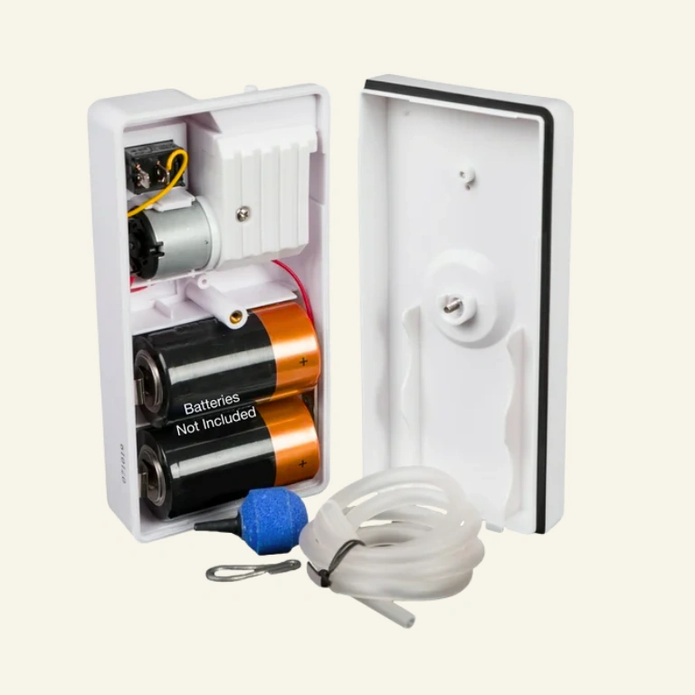• Long Battery Life: Battery powered air pump operates up to 75 hours using 1 or 2 alkaline “D” cell batteries (not included)
