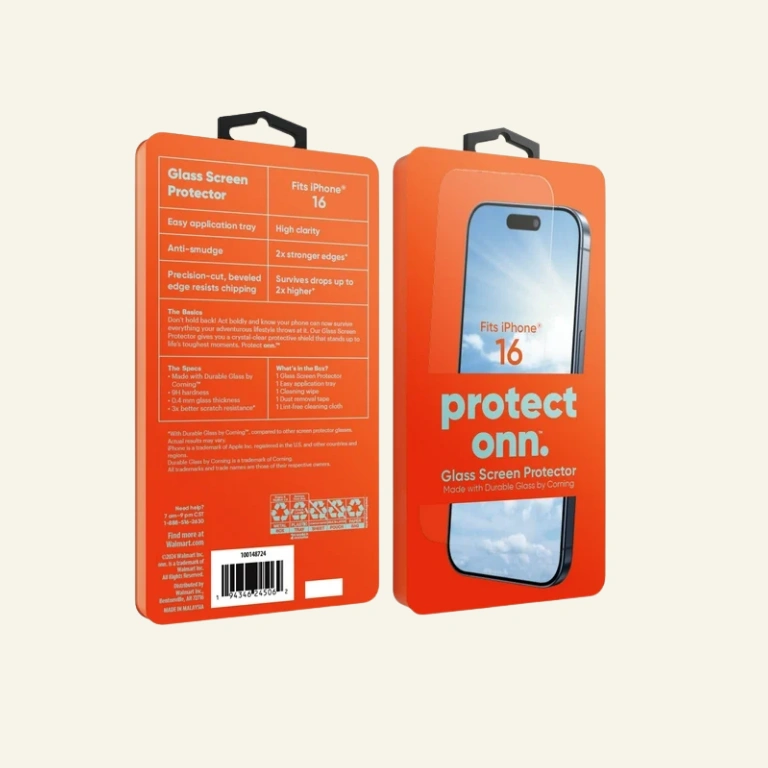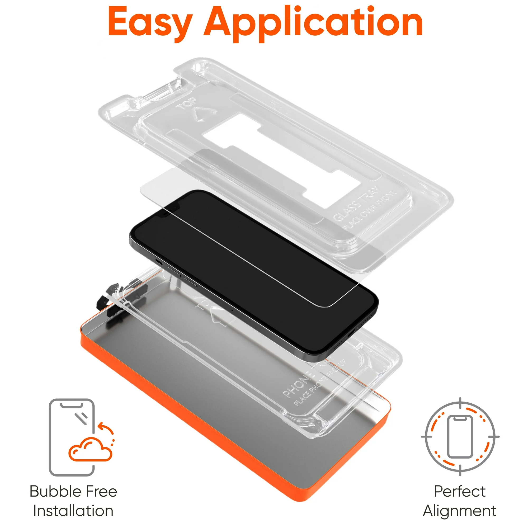 - What’s in the box: 1 glass screen protector, 1 easy application tray, 1 cleaning wipe, 1 dust removal tape, 1 lint-free cleaning cloth