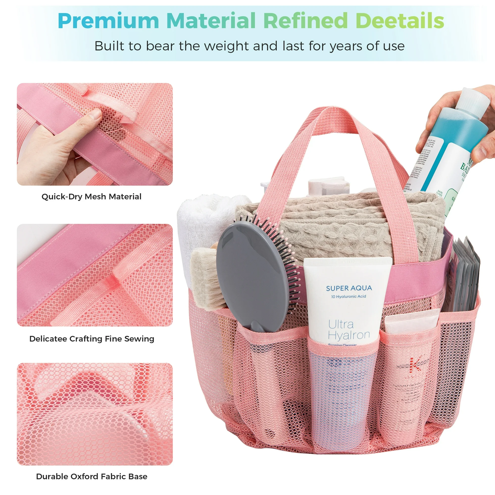 - ❥❥Superb Quality❥❥: The shower caddy tote bag is breathable and lightweight. The wide reinforced handles are strong, durable and won’t pinch your hands. This shower bag can be hung from doors,